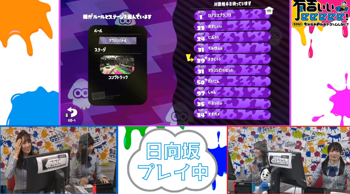 「有吉ぃぃeeeee!」ゲーム配信で日向坂メンバーとスプラトゥーンが出来るスペイベ中!!