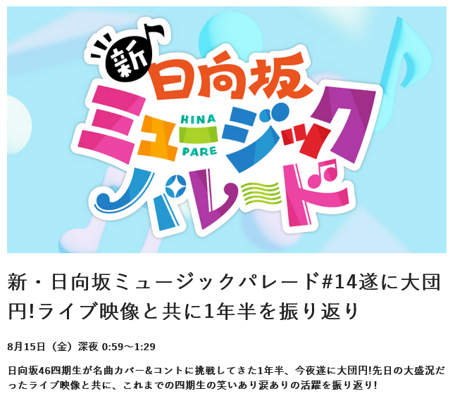 【日向坂46】ひなパレ、そのまま五期生にバトンタッチで3時のヒロイン続投の可能性も 2025/8/14 日向坂46まとめ速報 " " 引用元:https://fate.5ch.net/test/read.cgi/hinatazaka46/1755117052 496:日向坂46まとめ速報 2025/08/14(木) 18:42:42.51 ID:riNylDdV0 日テレの番組表だと大団円とか最後の宴とか書いてるけど終マークは無いな 引用元:日本テレビ公式サイト 続きを読む Source: 日向坂46まとめ速報