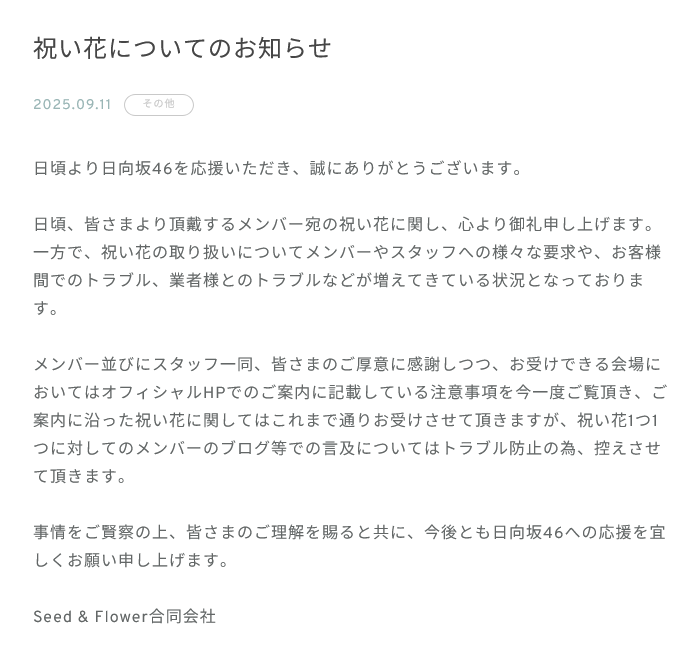 【日向坂46】祝い花問題に対するおひさまの反応がこちら… 2025/9/11 日向坂46まとめ速報 " " 引用元:https://fate.5ch.net/test/read.cgi/hinatazaka46/1757408536 958:日向坂46まとめ速報 2025/09/11(木) 10:00:51.33 ID:Gw2O2ScH0 引用元:https://hinatazaka46.com/s/official/news/detail/O100207 続きを読む Source: 日向坂46まとめ速報