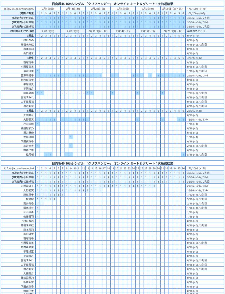 日向坂46 16thシングル「クリフハンガー」ミーグリ 1次抽選結果#日向坂46 #Hinatazaka46#日向坂46完売表#日向坂46_クリフハンガー https://t.co/xg7q5jY76K pic.twitter.com/DxvKAFRX8S