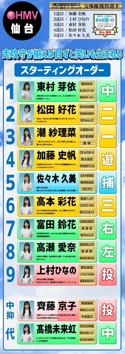『bis』レギュラーモデル就任おめでとうございます!#渡邉美穂 さん、#丹生明里 さん 埼玉トリオが揃いました!ありがとうございます!!そして、今回は仙台店(@HMV_Sendai)と野球をしています pic.twitter.com/kGKR4OimYY